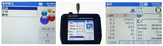 四、摘除清零過濾器,安裝等速采樣器,檢測進行:包括自動模式、手動模式和蜂鳴模式。